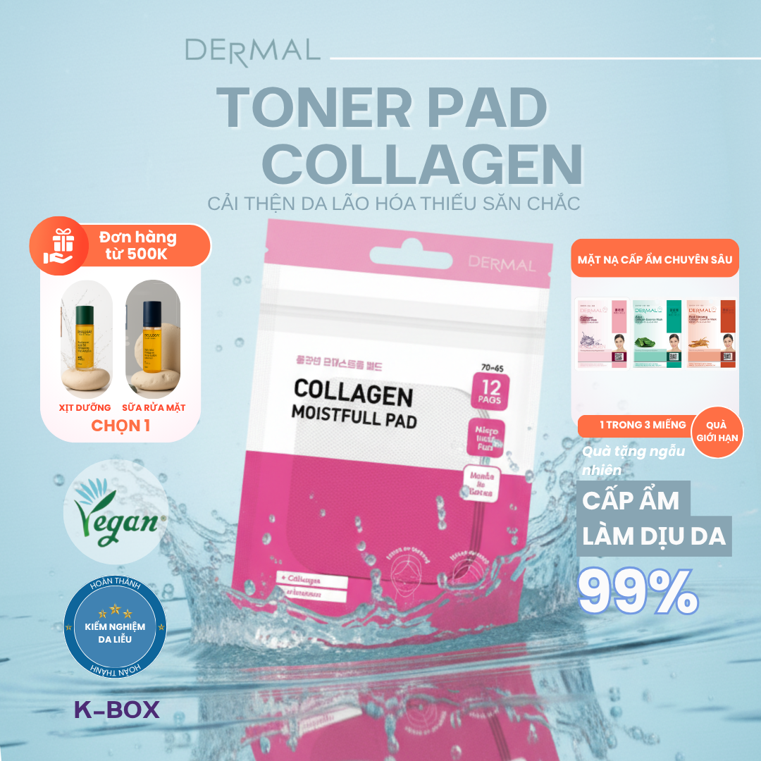 Dermal Collagen Toner Pad là dòng pad dưỡng da mini tiện lợi, kết hợp tính năng cấp ẩm – làm dịu – tăng độ đàn hồi trong một bước nhanh gọn. Với tinh chất collagen thủy phân cùng chiết xuất thực vật thiên nhiên, sản phẩm giúp làn da trở nên mềm mại, săn chắc và đầy sức sống chỉ sau vài phút sử dụng.